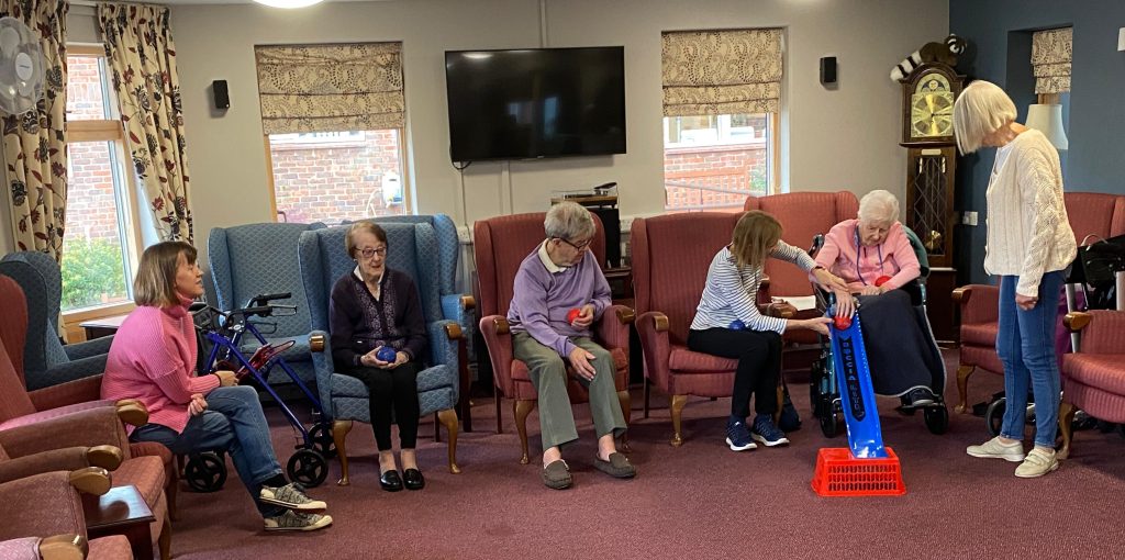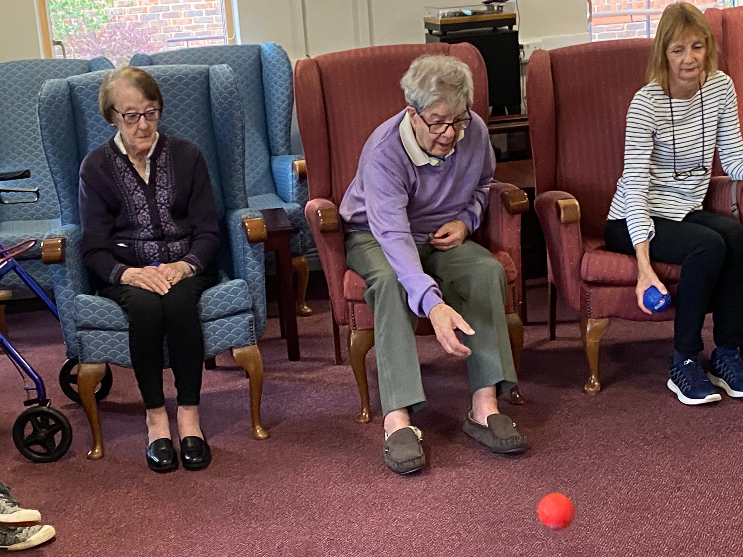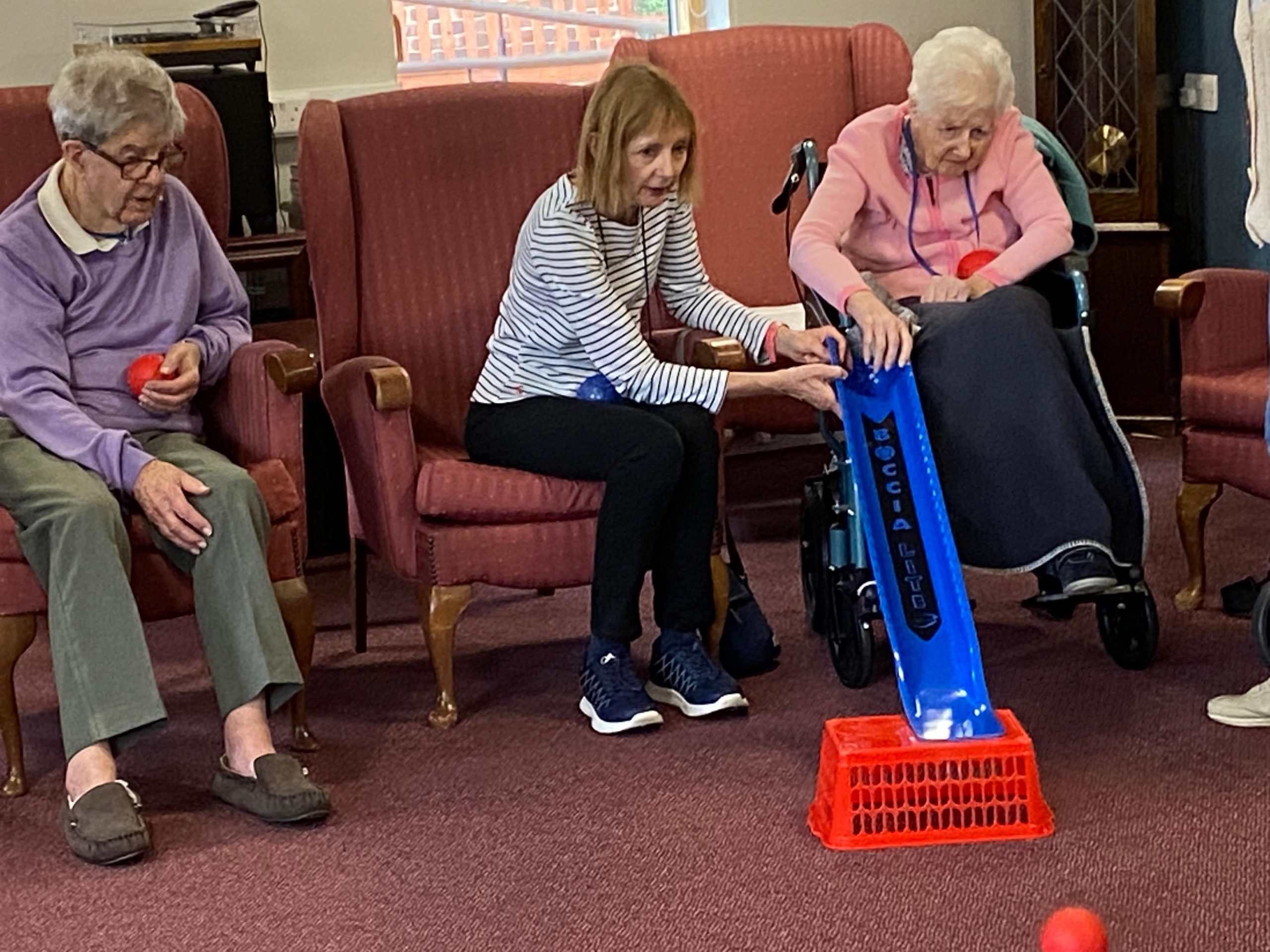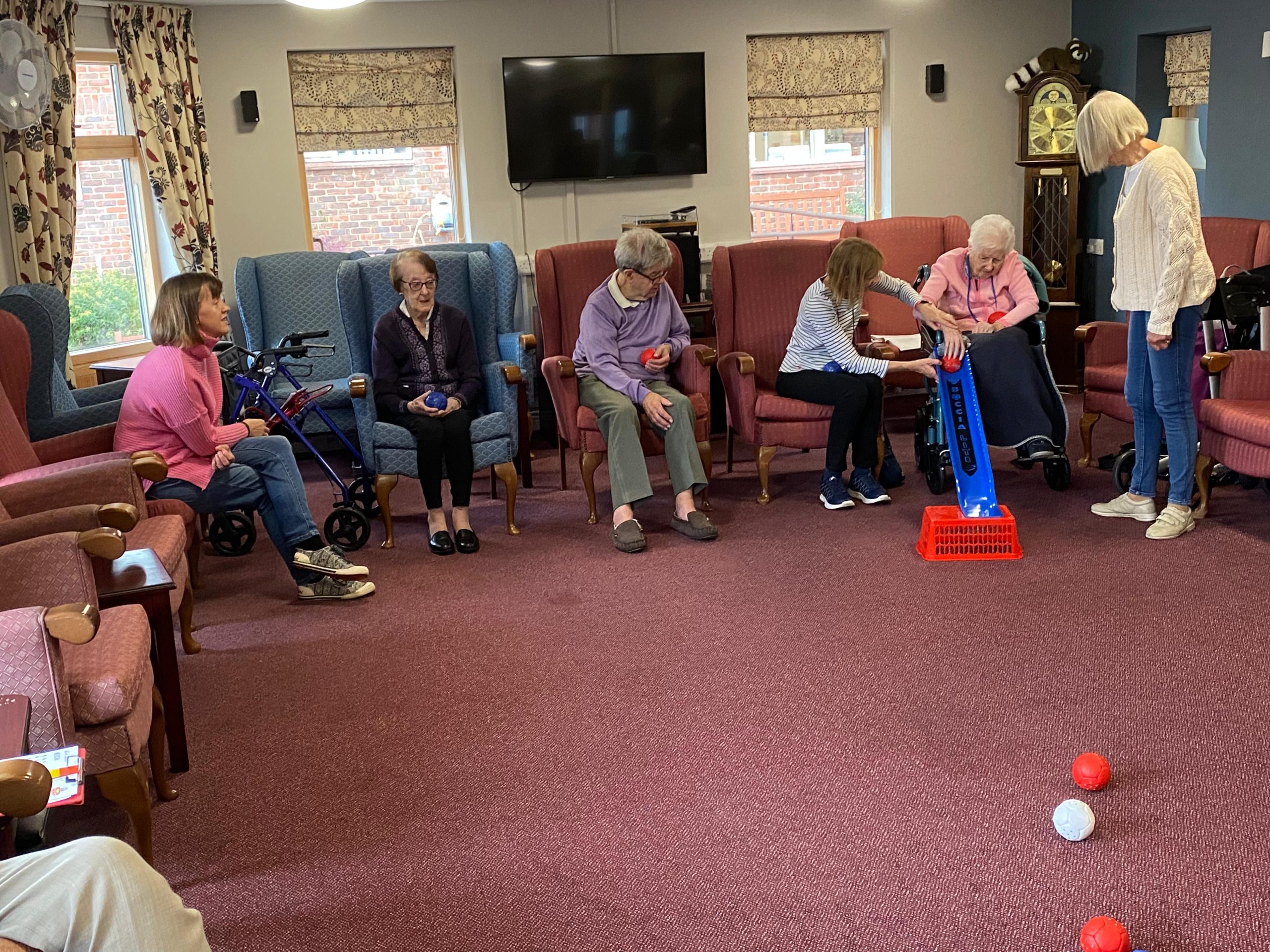 A nice and calm game of Boccia was played inside with our residents.