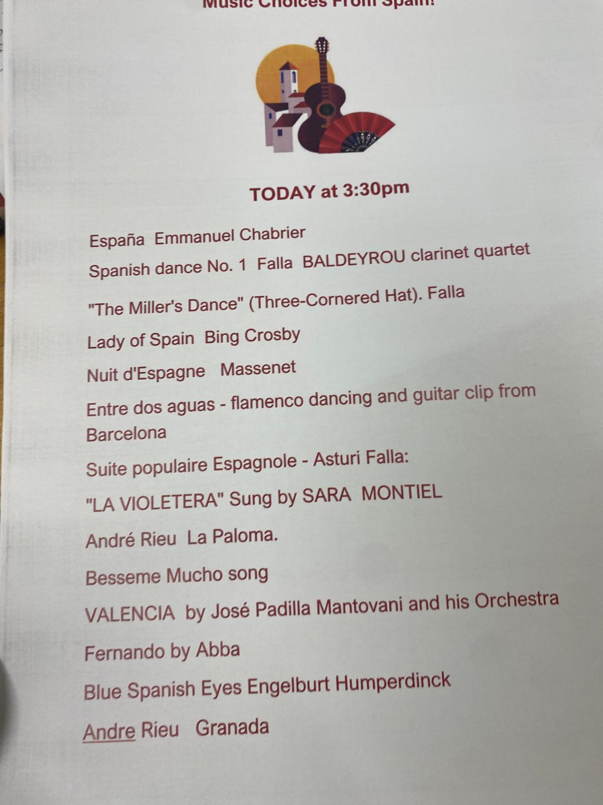 We went all Spanish today at DGH with a special rice chicken and Spanish omelette and more. The music choices for the afternoon were also Spanish.